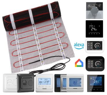 Diese Fußbodenheizung ist auch für Nassräume geeignet und kann so auch im Badezimmer verlegt werden. Durch die flache Herstellungsart, sind die Heizmatten auch wunderbar für Renovierungen geeignet. Gesteuert wird die Heizmatte über eine der sieben verfügbaren, externen Steuerungen in unterschiedlicher Ausführung.